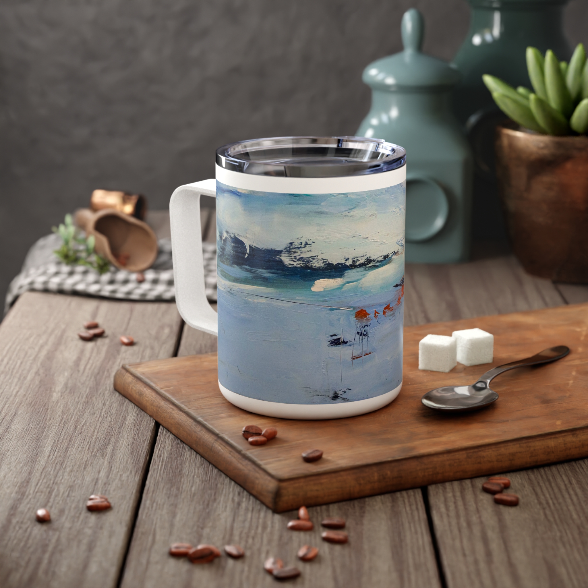 Travel Mug Insulated Stainless Steel 10oz – Hot or Cold Drinks – White Detailing & Clear Lid – Companion Sound