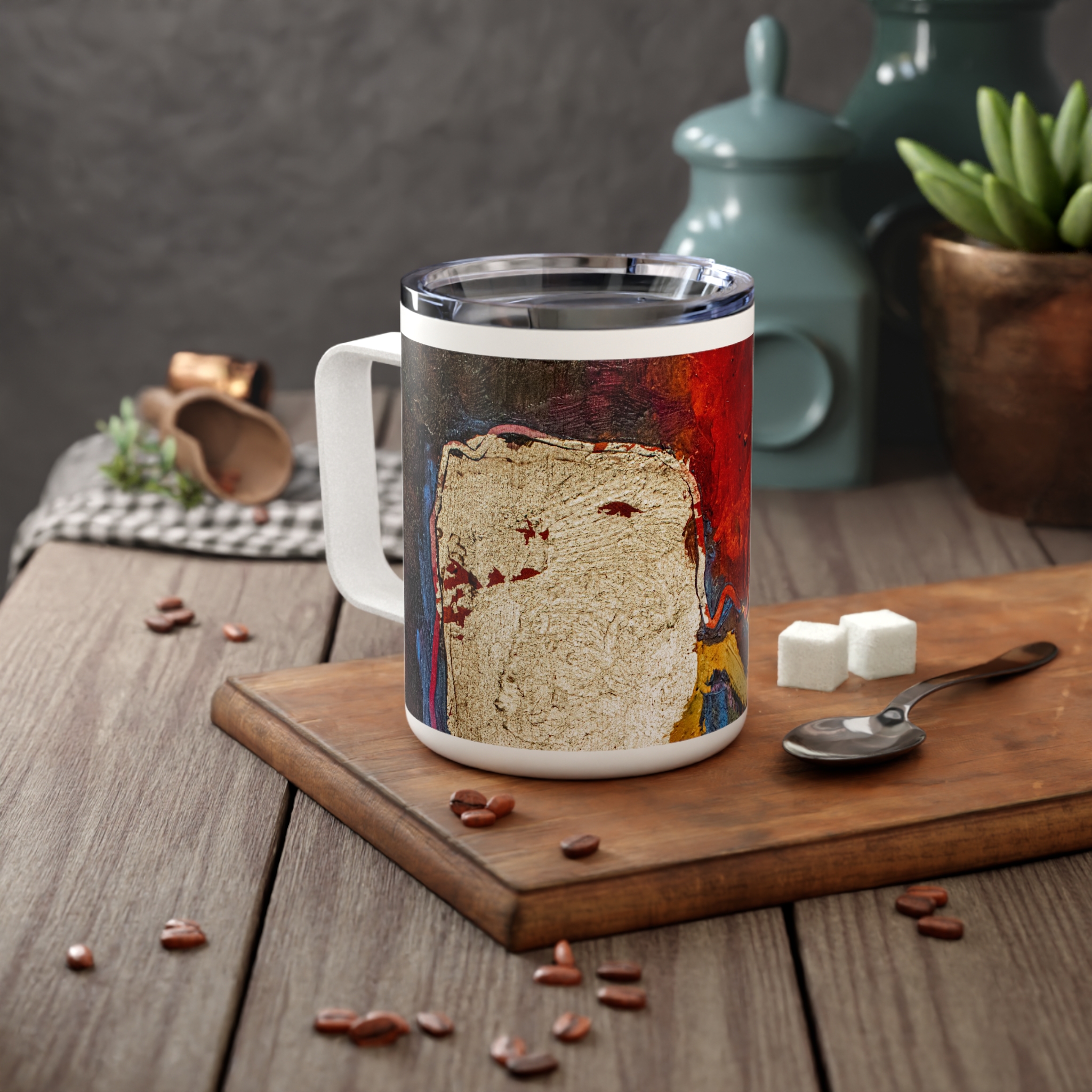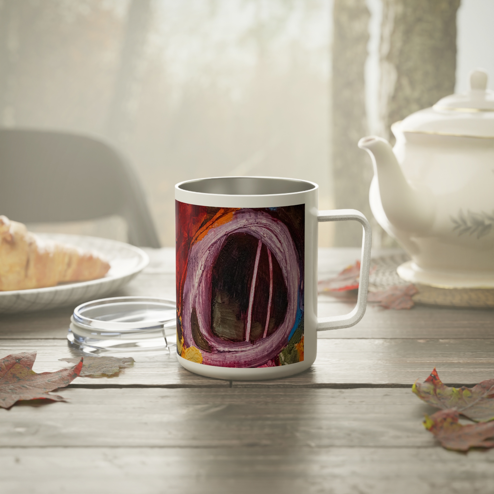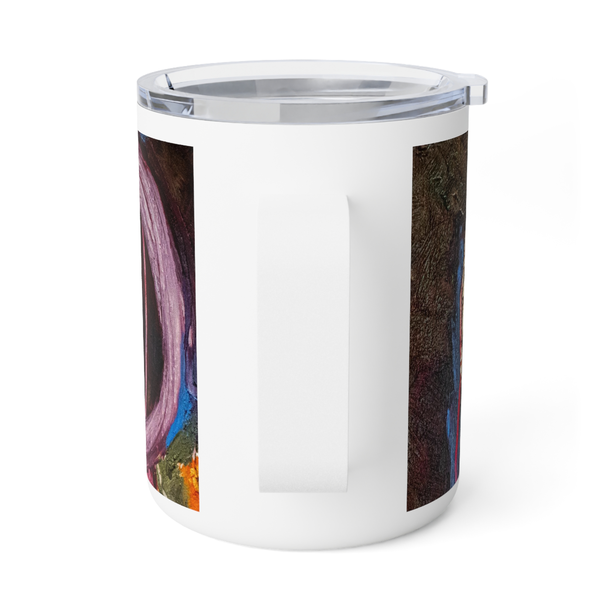Travel Mug Insulated Stainless Steel 10oz – Hot or Cold Drinks – White Detailing & Clear Lid – Quiet Companion